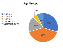 Table 2 shows an age distribution leaning towards the middle age groups, with 40.66% in the 31– 40-year range, followed by 29.67% in the 21–30-year range. This may indicate significant participation of younger adults in the labor market, with proportional representation from older age groups.